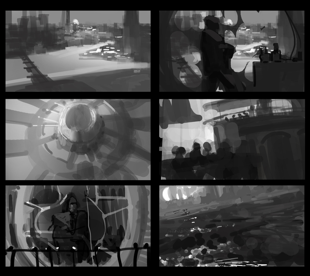 Covering the basics of how I cinematically sketch using values and shape design to cover broad ideas and approaches using various techniques: Adobe Photoshop CC and PureRef. Mixture of Matte painting techniques and texture/round brush approach.
